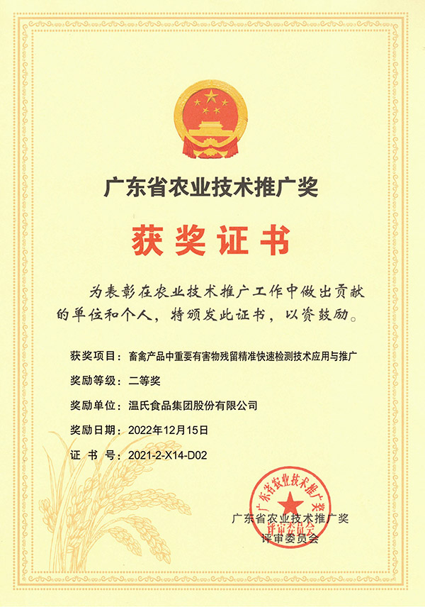 ¹ã¶«Ê¡Å©ÒµÊÖÒÕÍÆ¹ã½±¶þµÈ½±-×ðÁú¹Ù·½¹É·ÝÏîÄ¿¡¶ÐóÇݲúÆ·ÖÐÖ÷ÒªÓк¦Îï²ÐÁô¾«×¼¿ìËÙ¼ì²âÊÖÒÕÓ¦ÓÃÓëÍÆ¹ã¡·